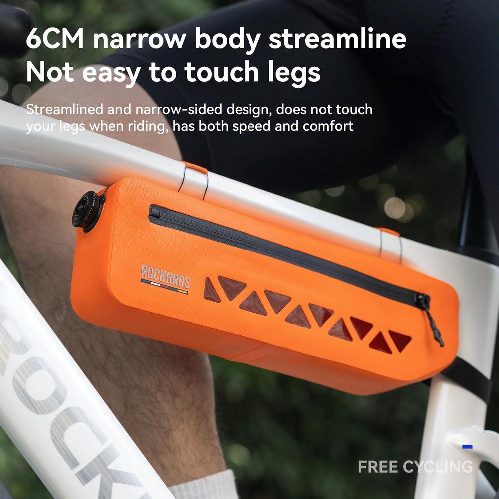 Ontworpen met een strak profiel voor de voorbuis integreert deze tas naadloos met het fietsframe. De compacte maar ruime vorm behoudt de aerodynamica en biedt betrouwbare opbergruimte.
