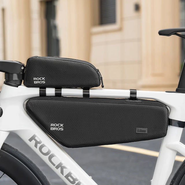 Dit is een frametas voor de fiets, geschikt voor montage op de bovenbuis of onderbuis. Ideaal voor het meenemen van een telefoon, sleutels, portemonnee, gereedschap, powerbank of snacks, zodat alles veilig en gemakkelijk bereikbaar blijft tijdens het fietsen.