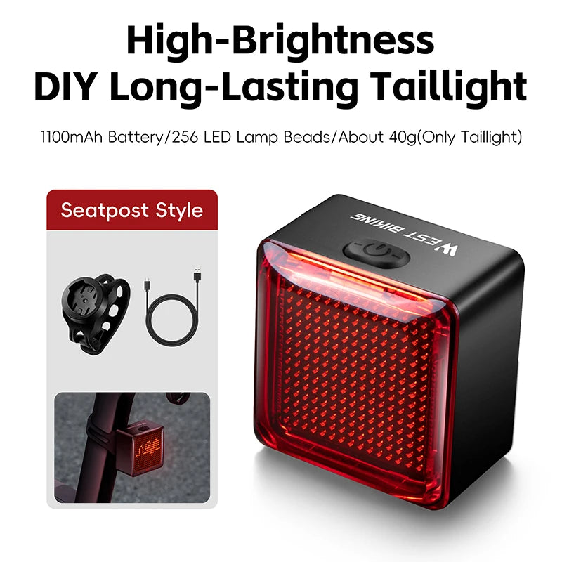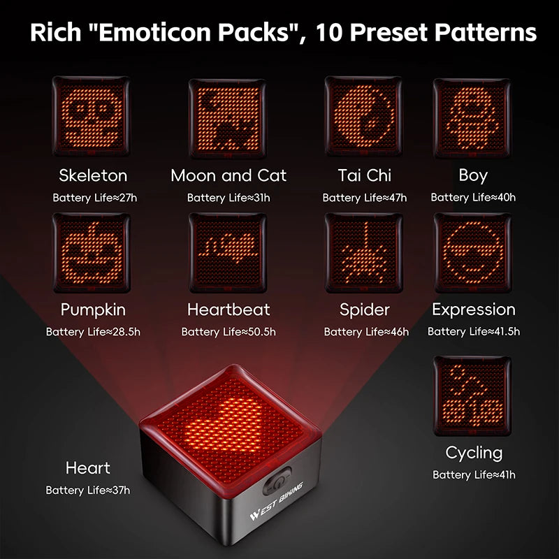 Maak je fietstochten veiliger én persoonlijker met het WEST BIKING DIY Pixel Achterlicht. Dit innovatieve achterlicht biedt programmable pixels, intelligente remdetectie en een lange batterijduur, zodat je niet alleen zichtbaar bent, maar ook je eigen unieke lichtpatronen kunt creëren. Ideaal voor stadsritten, nachtritten en avontuurlijke MTB-tochten.