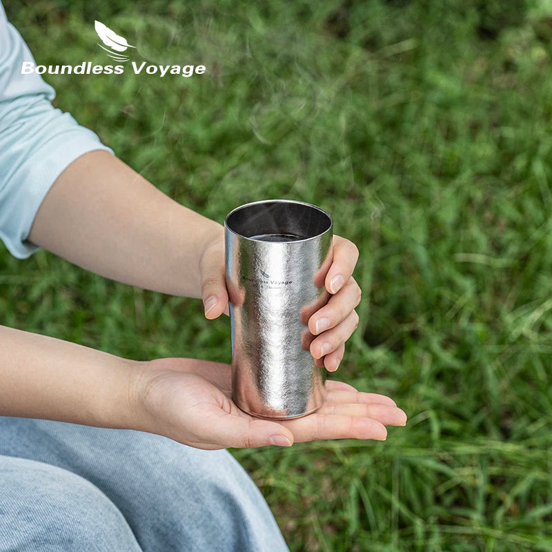 De Boundless Voyage Titanium Beer Cup 300ml is een ultralichte, dubbelwandige titanium beker die perfect is voor zowel thuisgebruik als outdoor avonturen. Dankzij het gebruik van hoogwaardig titanium is deze mok roestvrij, corrosiebestendig, krasvast en extreem duurzaam, terwijl hij verrassend licht blijft.