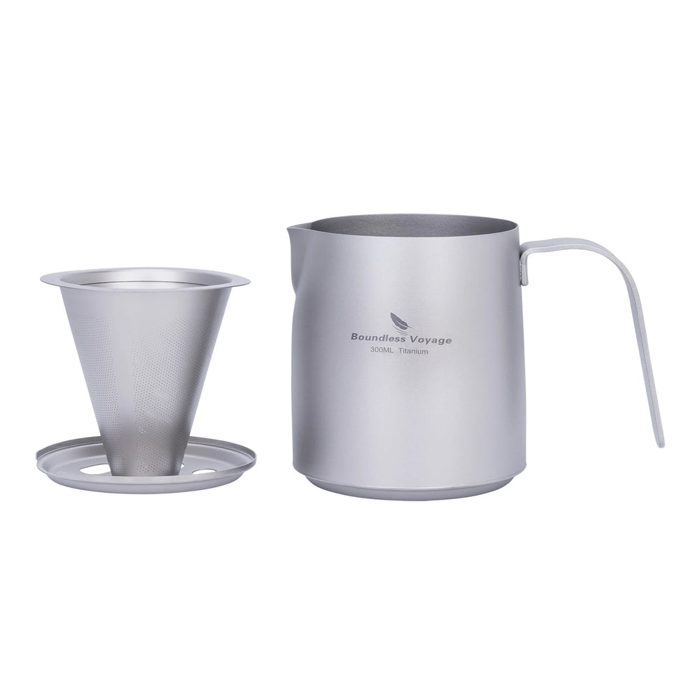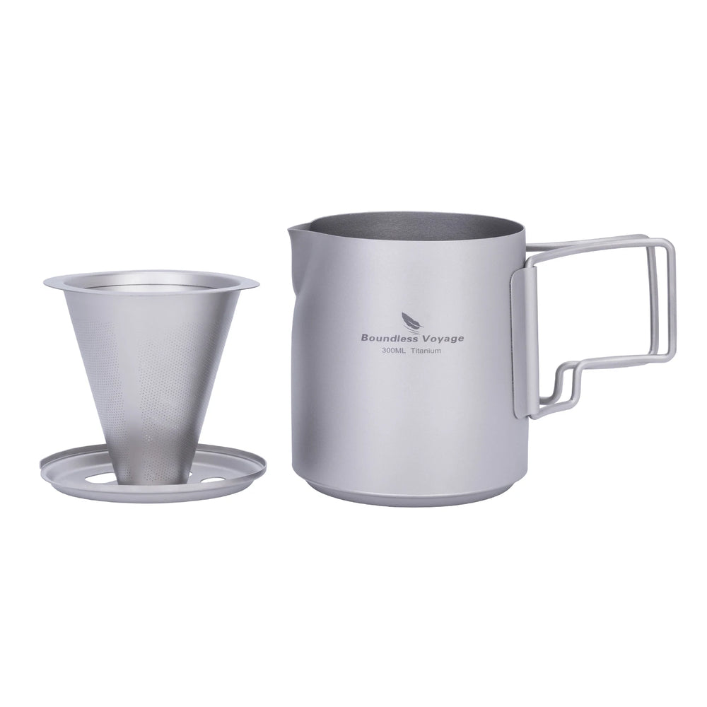 Zet overal een perfecte kop koffie met de Boundless Voyage titanium pour-over coffee maker. Deze slimme en minimalistische koffieset combineert een koffiebeker en afneembare filter in één compact ontwerp en is ideaal voor kamperen, reizen, backpacken of thuisgebruik.