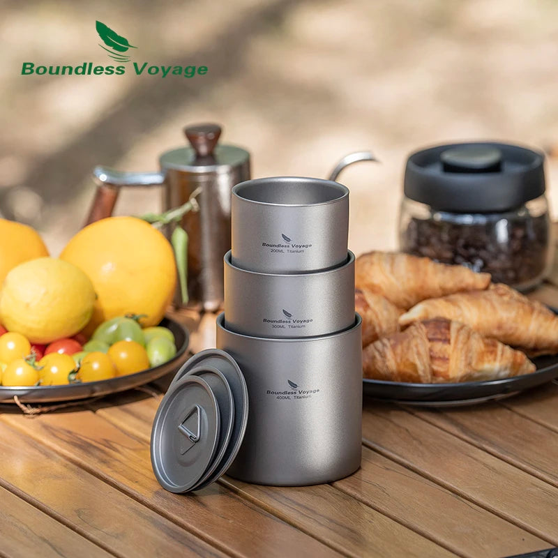 De Boundless Voyage titanium dubbelwandige mokken zijn ideaal voor outdoor activiteiten, reizen of dagelijks gebruik. Gemaakt van premium TA1 puur titanium, combineren deze mokken lichtgewicht, duurzaamheid en hygiënisch design met optimaal gebruiksgemak.